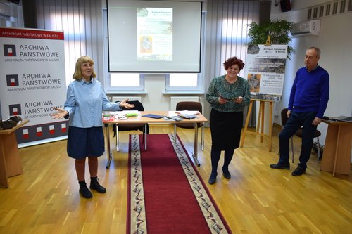Spotkanie otworzyła dyrektor APK dr Grażyna Schlender, przedstawiając sylwetkę autorki książki. Krystyna Velkova jest geografem, regionalistką, autorką 7 książek, z których 5 było wcześniej promowanych w Archiwum. Na stałe mieszka w Niemczech, do Polski często przyjeżdża, by zbierać materiał do kolejnych publikacji. Ma ogromną pasję do tego, by na nowo odkrywać rodzinne strony, okolice Cieni Młyn, Opatówka. Wydawcą jej publikacji jest firma "Edytor" należąca do Sławomira Woźniaka.