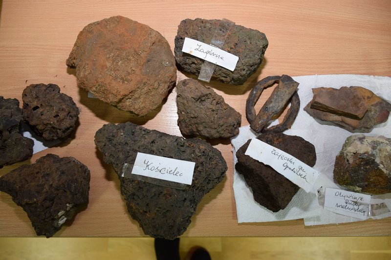 Krystyna Velkova wyjaśniła, że na ziemi kaliskiej są bardzo duże złoża rudy darniowej żelaza. To tutaj była ostania linia zlodowacenia. Lodowiec niósł ze sobą piasek z dużą ilością dodatkowych substancji. Było to środowisko beztlenowe. Na terenie zalewowym, w dolinie Prosny, ruda występowała w granulkach. Miejscowa ludność masowo wykorzystywała rudę darniową do budowy domów, ogrodzeń, mostów i innych budowli. Jeszcze w latach 70. Pozyskiwano rudę do budowy, wywożono ją także na Śląsk do wytopu - zawierała od ok. 20% do nawet 50 % żelaza. Z odkryć archeologicznych wynika, że na naszym terenie istniało wiele dymarek, w których wytapiano żelazo. Najwięcej takich budynków można dziś spotkać w Końskiej Wsi. Z tego materiału wyrabiano nawet groby na cmentarzach. Ludzie nie zwracają na ten materiał większej uwagi, choć niektórzy świadomie do niego wracają, jako elementu lokalnego dziedzictwa. W Choczu ktoś zbudował z niej płot, a w Pyzdrach powstają z niej przystanki autobusowe. Książka w postaci albumu zawiera wiele przykładów wykorzystania rudy - znajduje się nawet na pałacu myśliwskim w Antoninie, a także na starej karczmie w Russowie.