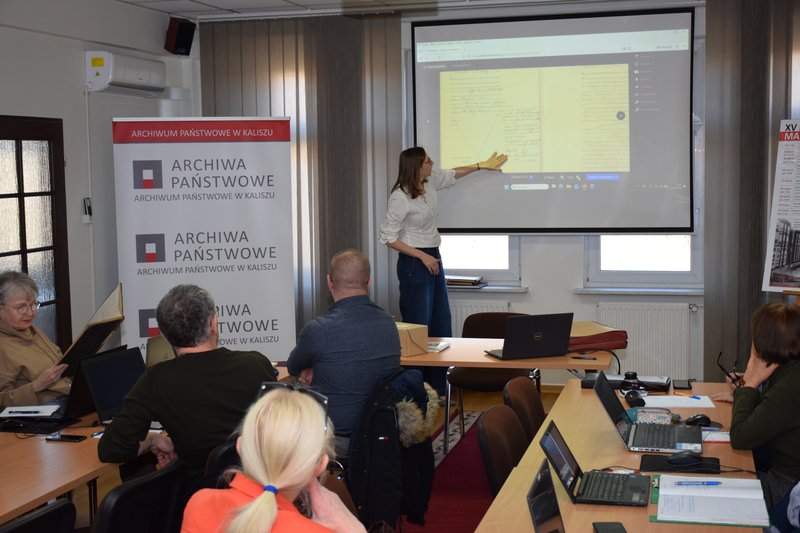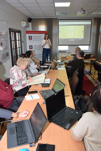 Pierwsza część warsztatów skupiła się na przedstawieniu najistotniejszych rodzajów materiałów archiwalnych do poszukiwań przodków. Dokumenty metrykalne - akty urodzeń, małżeństw i zgonów zostały "rozłożone" na czynniki pierwsze. Uczestnicy dowiedzieli się jakie informacje z nich można pozyskać oraz jak, dzięki nim, odszukać kolejne pokolenia wstecz. Wśród zaprezentowanych i omówionych archiwaliów znalazły się księgi ludności, karty meldunkowe, świadectwa szkolne z Gimnazjum Żeńskiego w Kaliszu zawierające zdjęcia uczennic.