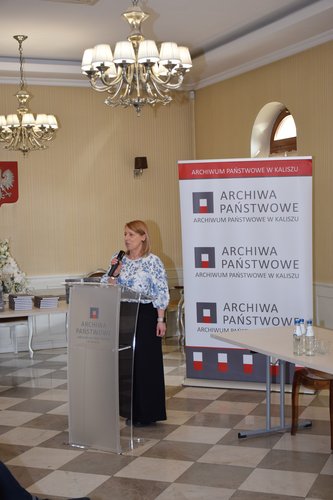 Gości przywitała i uroczystość prowadziła kierująca Archiwum kierownik Oddziału III udostępniania zasobu archiwalnego Edyta Pietrzak.