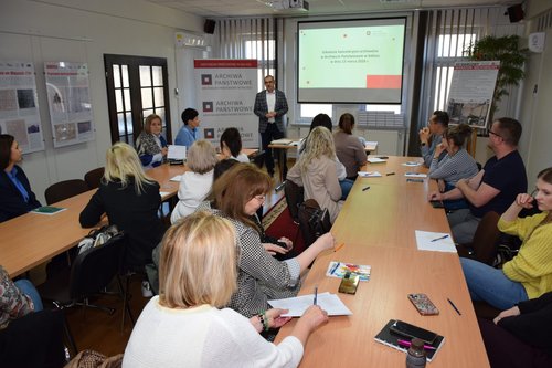 Duże zainteresowanie sprawiło, że uczestnicy zostali podzieleni na dwie grupy. Pierwsza miała zajęcia 13 marca. Szkolenie prowadzili: Karol Andrzejewski - kierownik Oddziału I kształtowania zasobu archiwalnego oraz Grzegorz Waliś - kierownik Oddziału II ewidencji, opracowania i zabezpieczania zasobu archiwalnego.