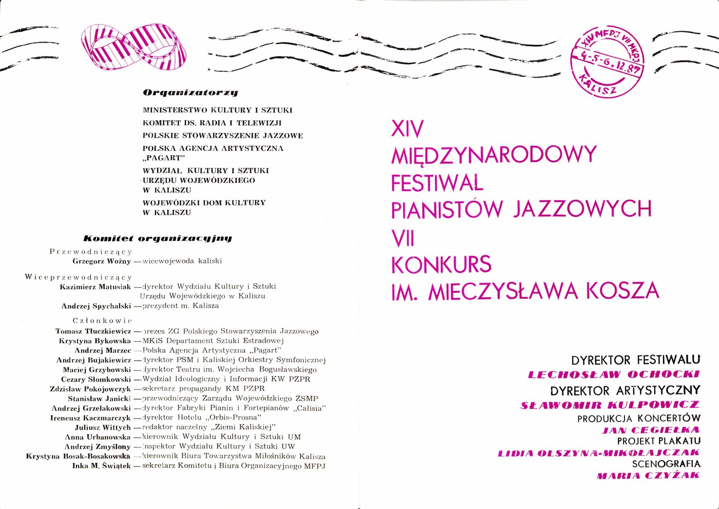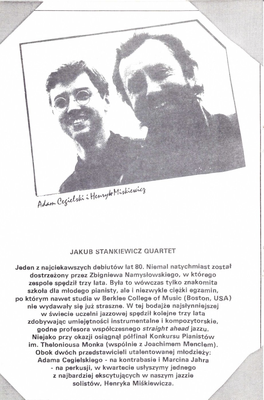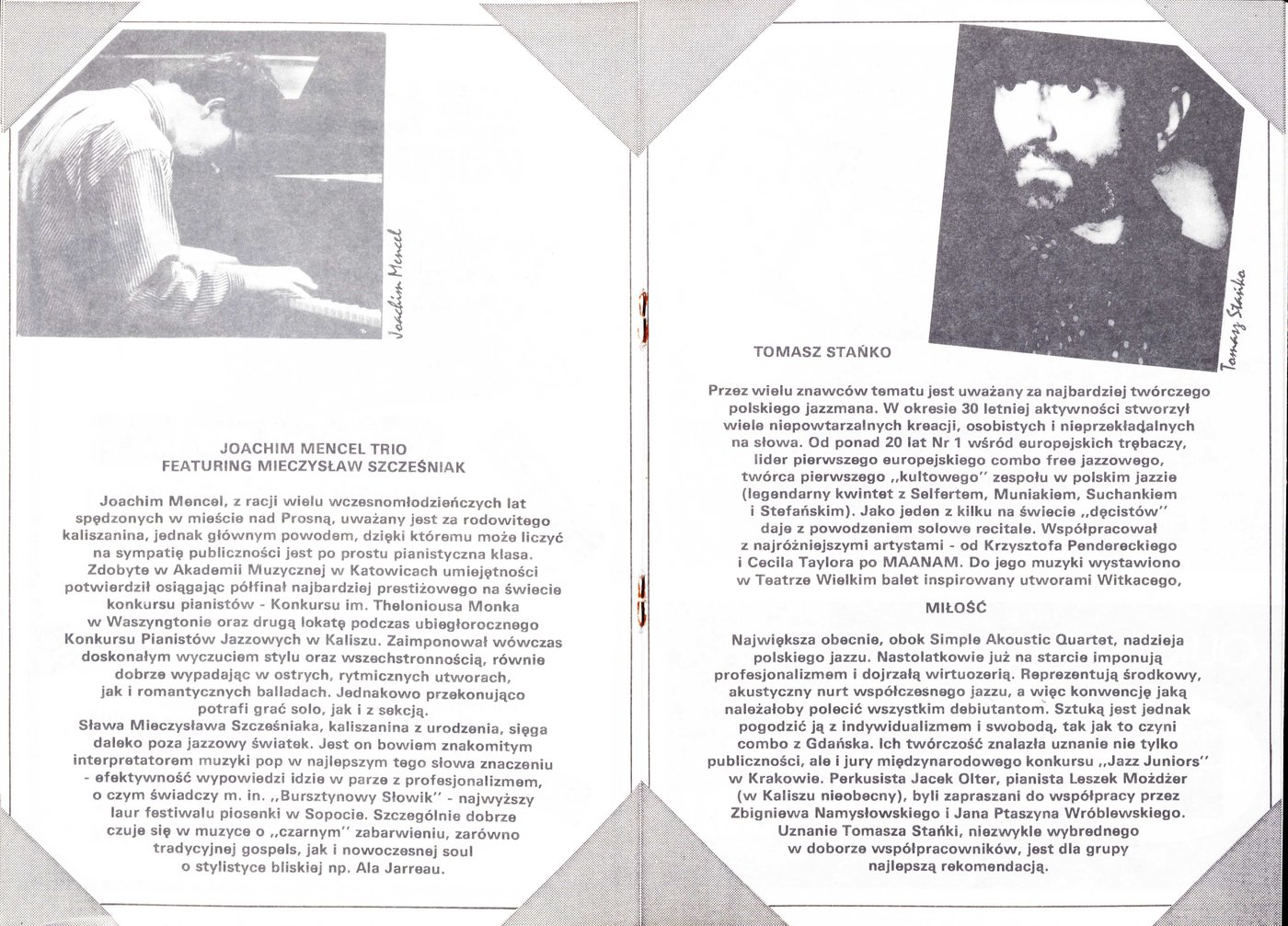 Broszura wydana z okazji zbliżającego się XIV Międzynarodowego Festiwalu Pianistów Jazzowych i VII Konkursu im. Mieczysława Kosza w 1987 r.