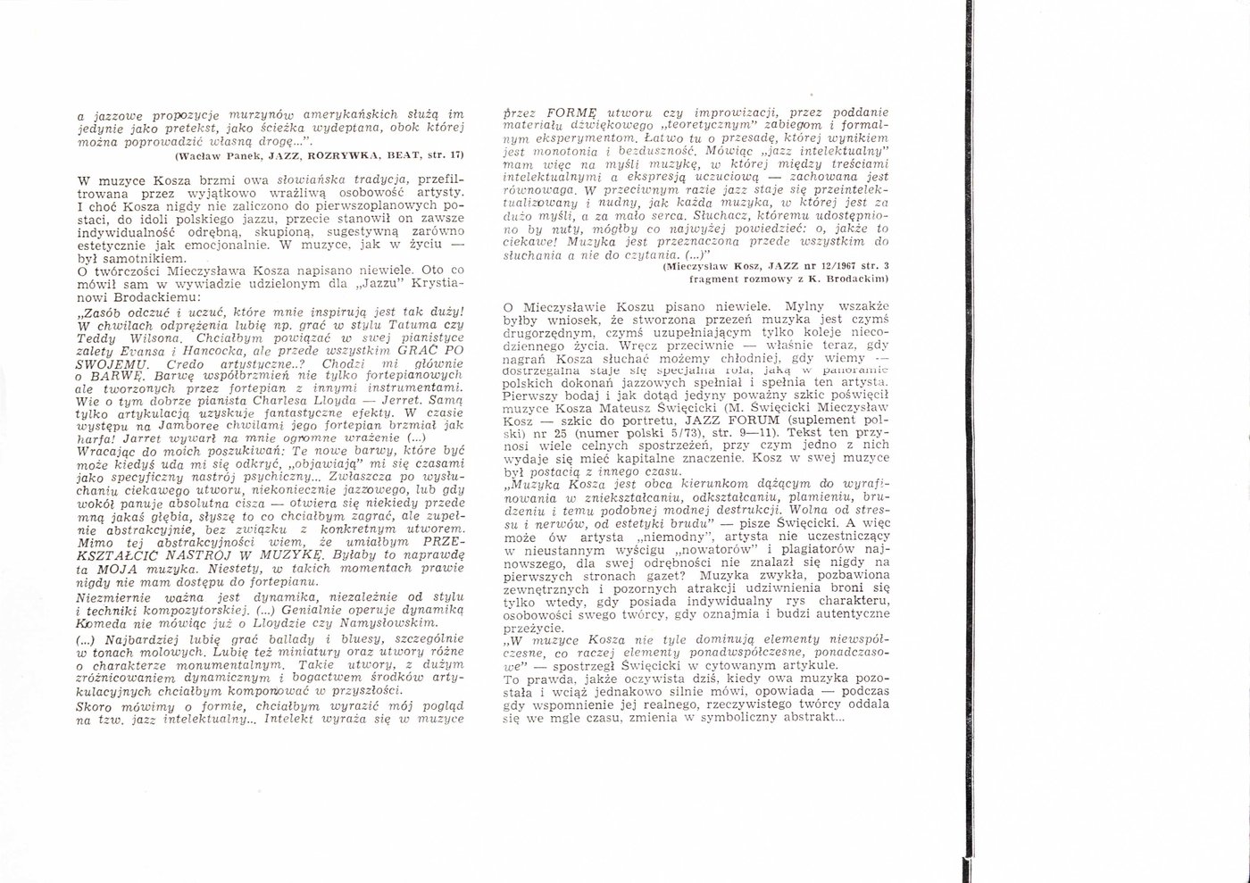 Relacja prasowa Andrzeja Kamińskiego z przebiegu VI Konkursu Pianistów Jazzowych im. Mieczysława Kosza w 1985 r.