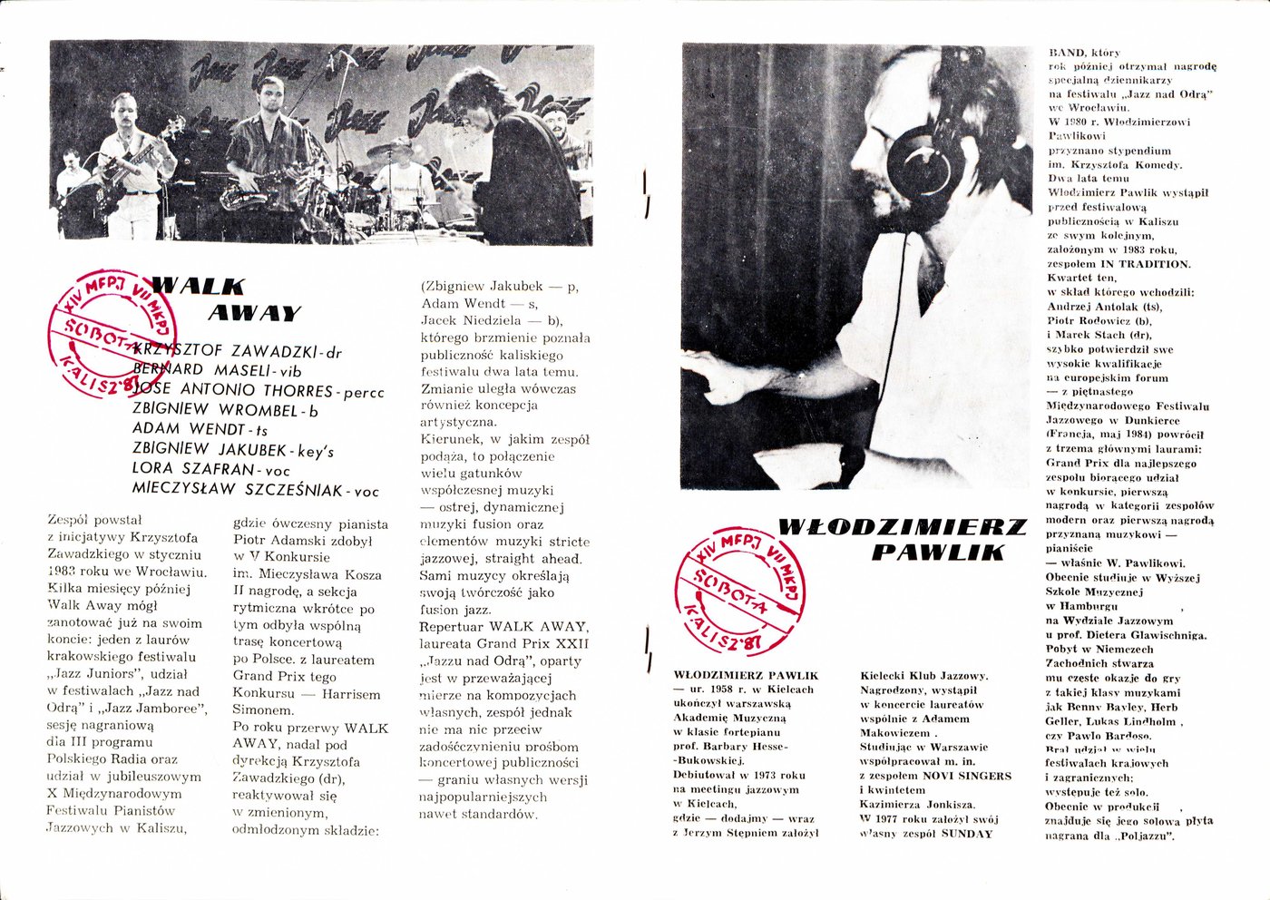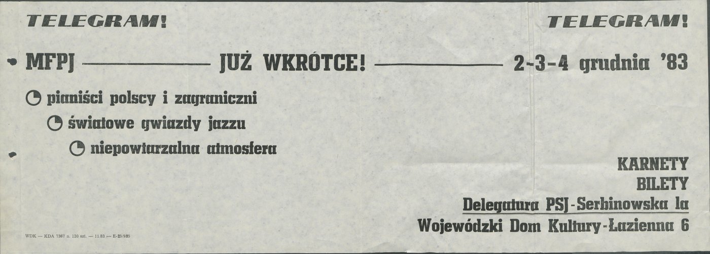 Materiały promocyjne X Międzynarodowego Festiwalu Pianistów Jazzowych w Kaliszu w 1983 r.
