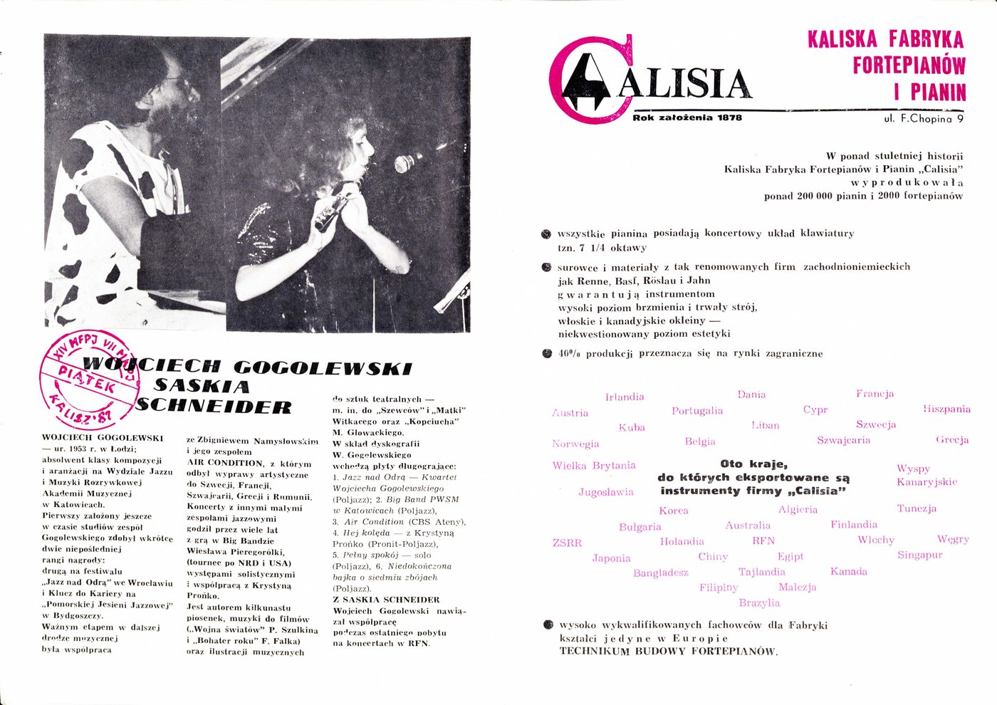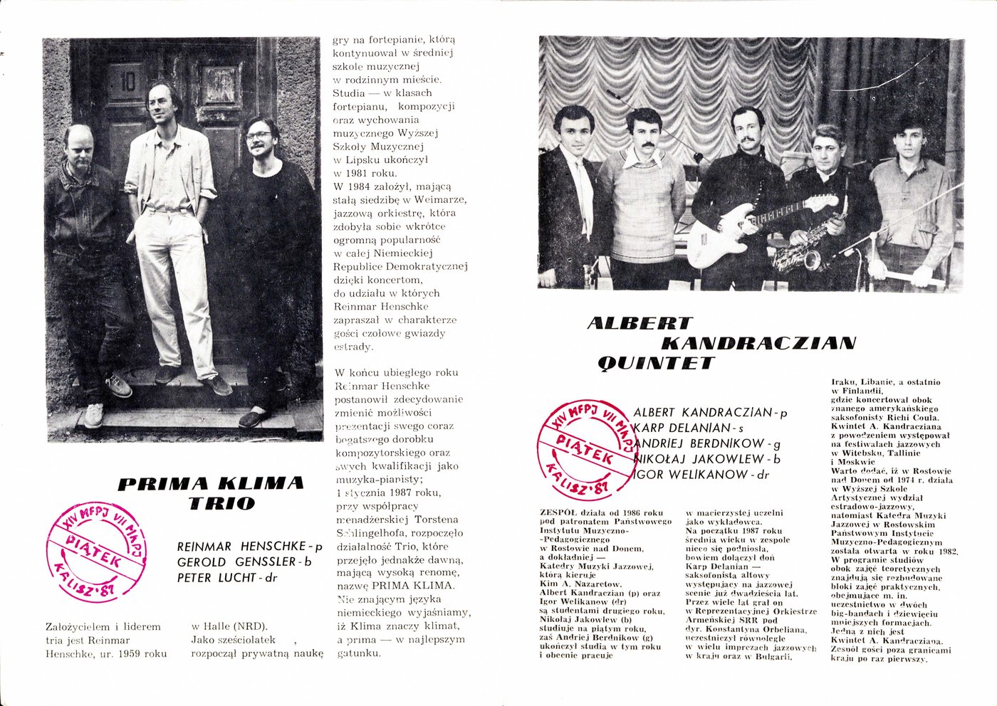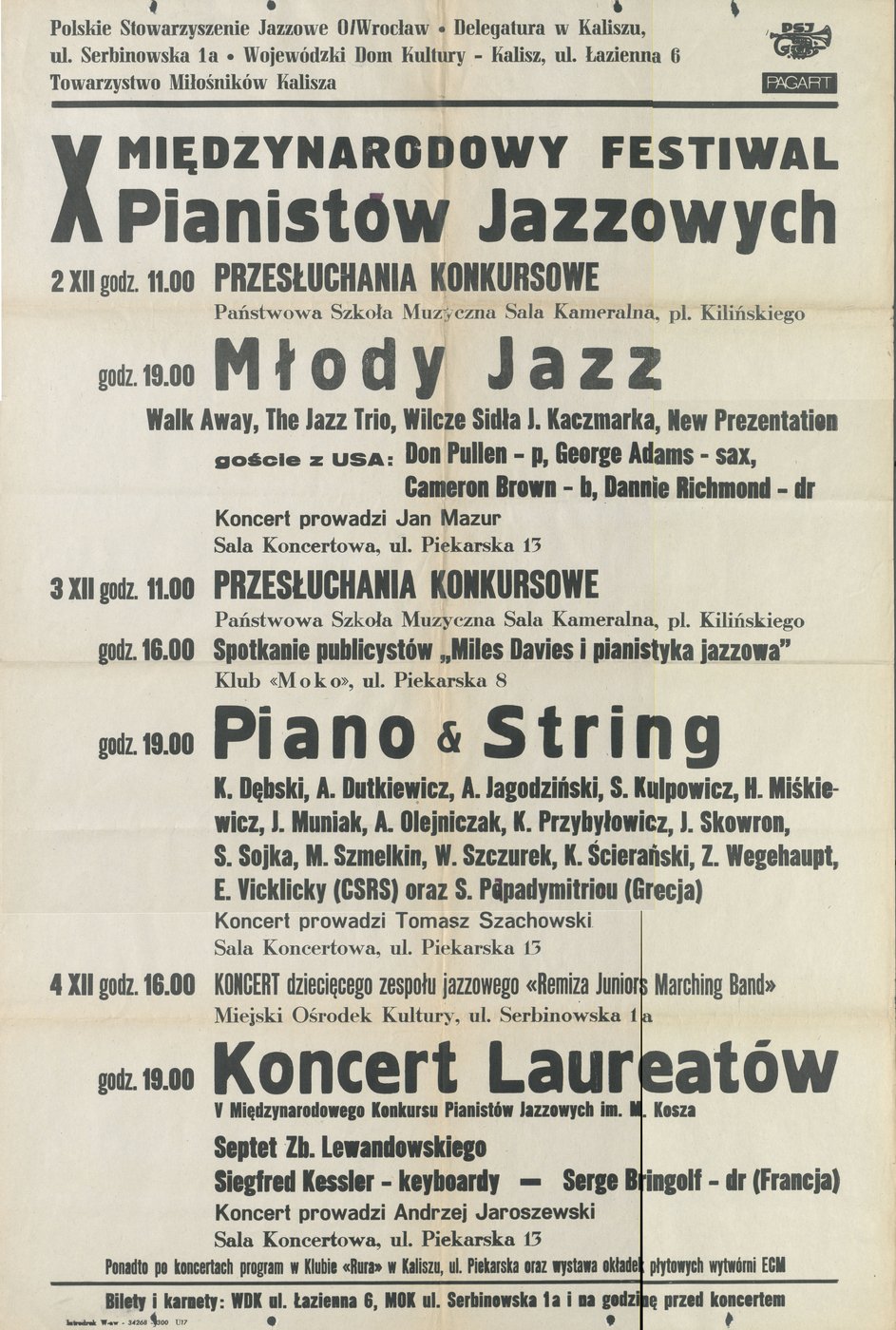 XII Międzynarodowy Festiwal Pianistów Jazzowych i VI. Międzynarodowy Konkurs Pianistów Jazzowych im. Mieczysława Kosza w Kaliszu w 1985 r.
