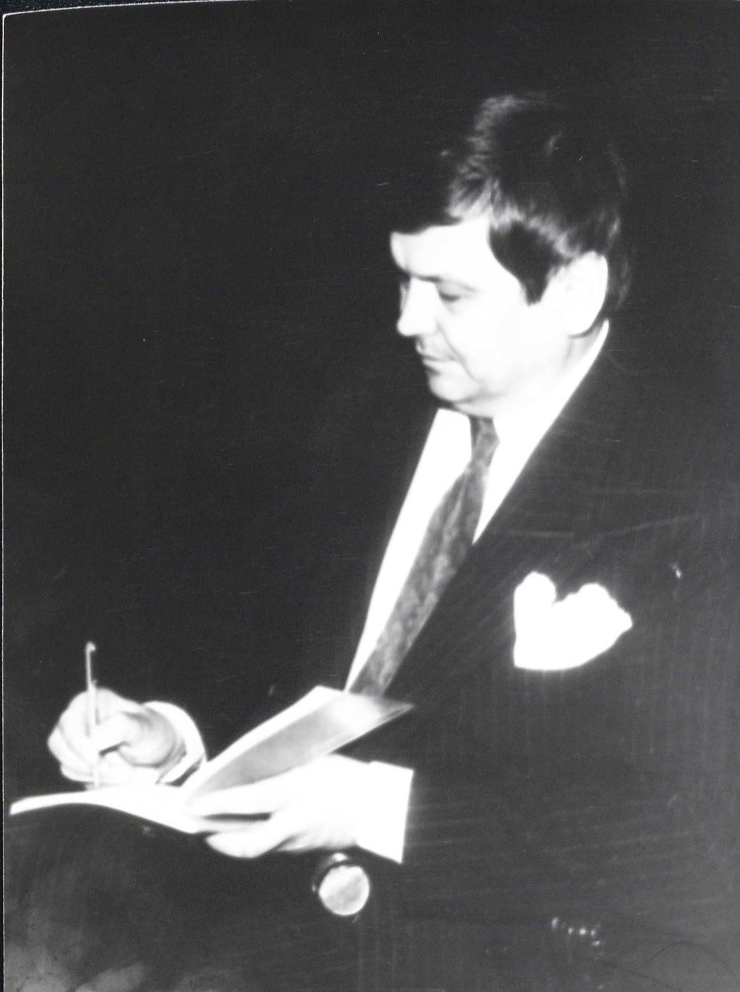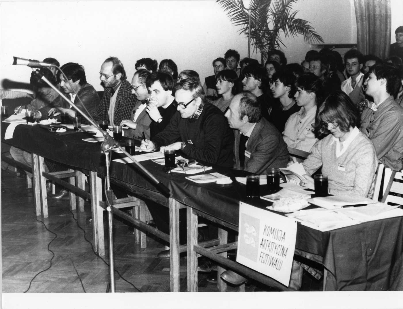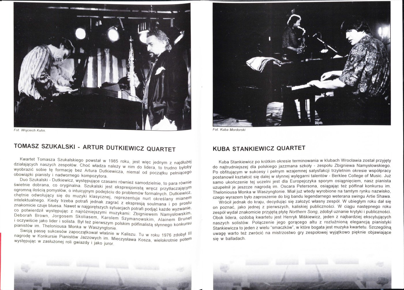 Uczestnicy XV Międzynarodowego Festiwalu Pianistów Jazzowych w Kaliszu w 1988 r. Na zdjęciach widoczny m. in. dziennikarz i krytyk muzyczny Bogusław Kaczyński.