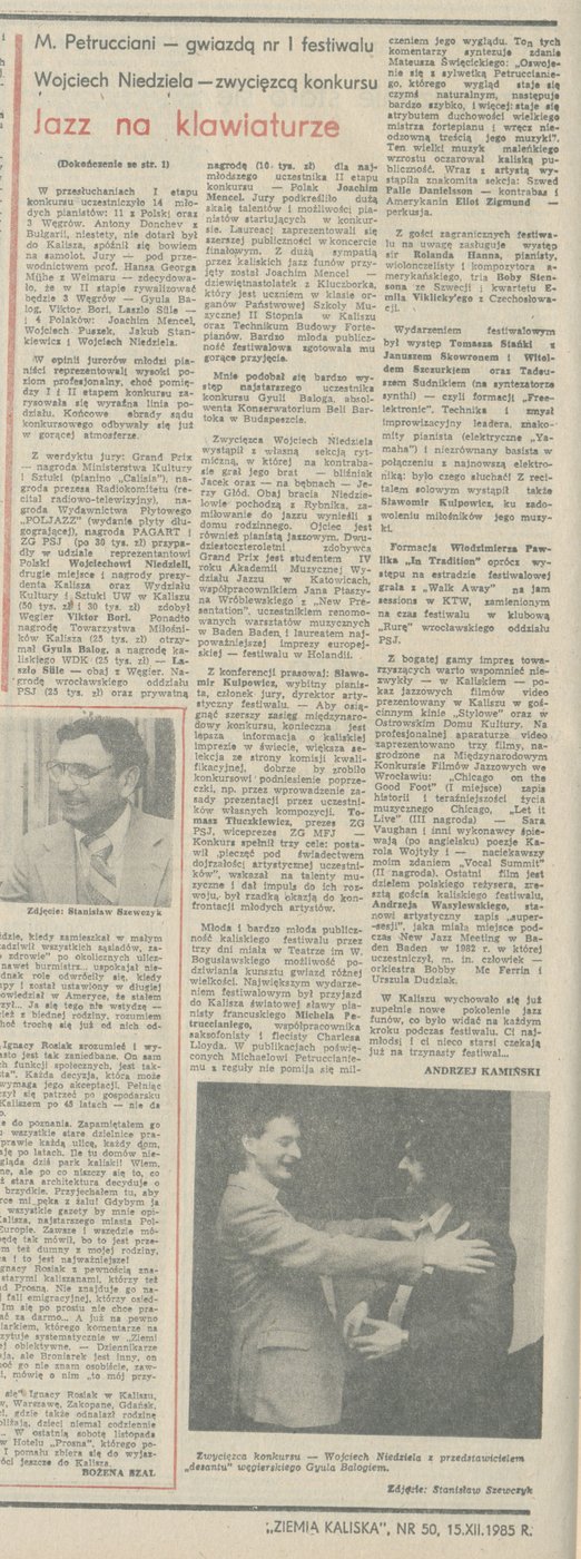 A. Kamiński, Jazz na klawiaturze, "Ziemia Kaliska", 1985, nr 50, s. 1, 6