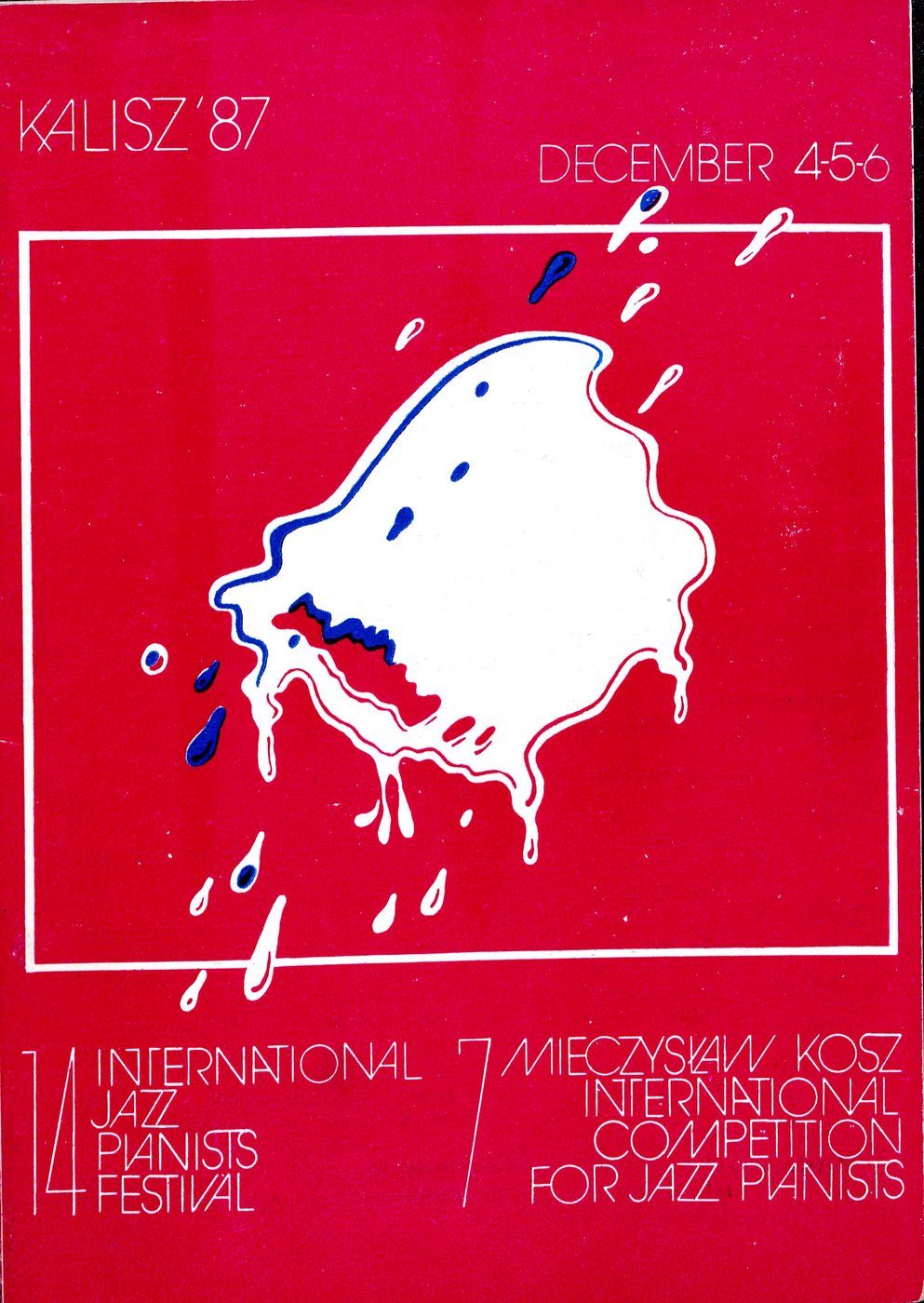 Plakat promujący XIII Międzynarodowy Festiwal Pianistów Jazzowych w Kaliszu w dniach 5-7 grudnia 1986 r.