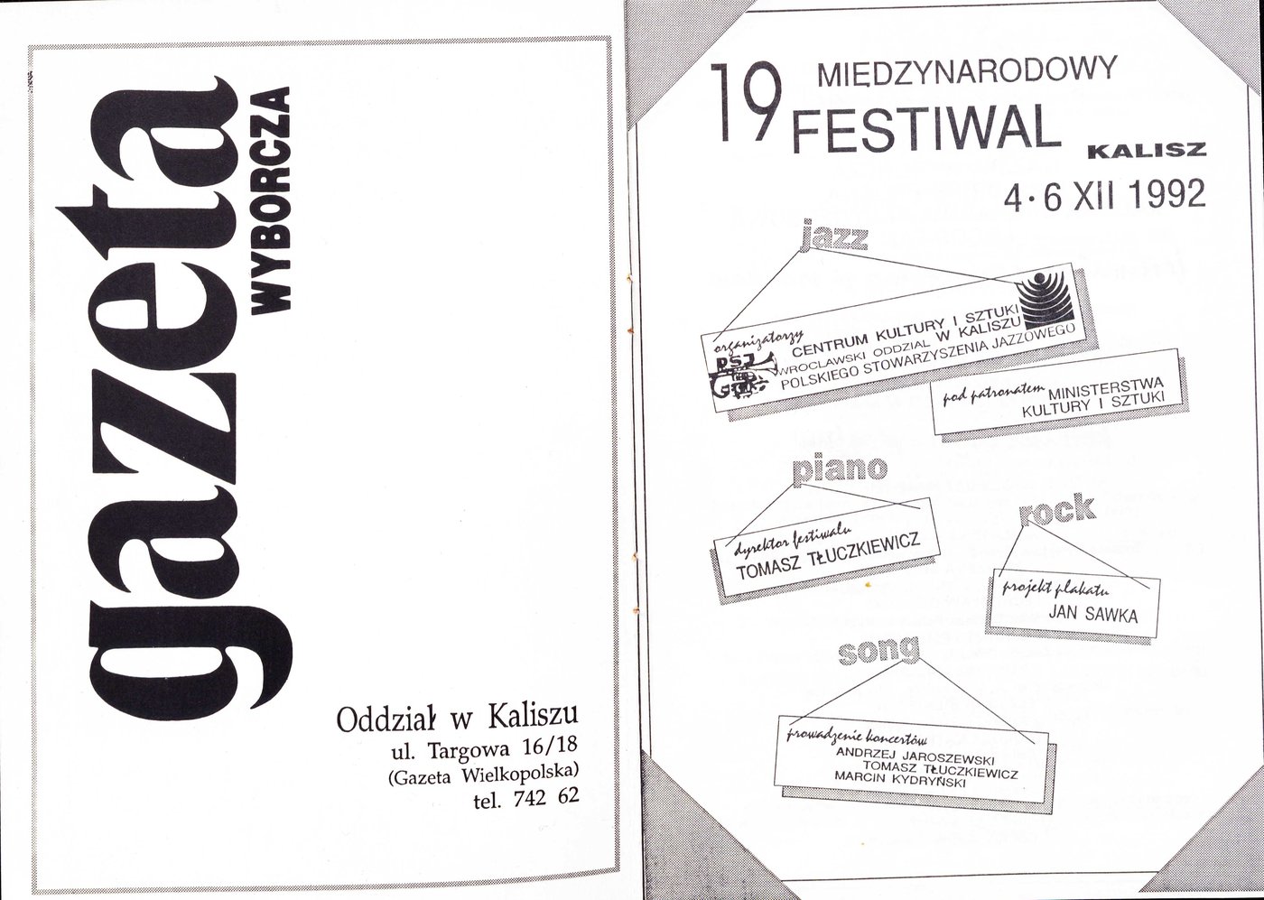 Broszura promująca XIX Festiwal Jazz-Piano-Rock-Song w Kaliszu w 1992 r.