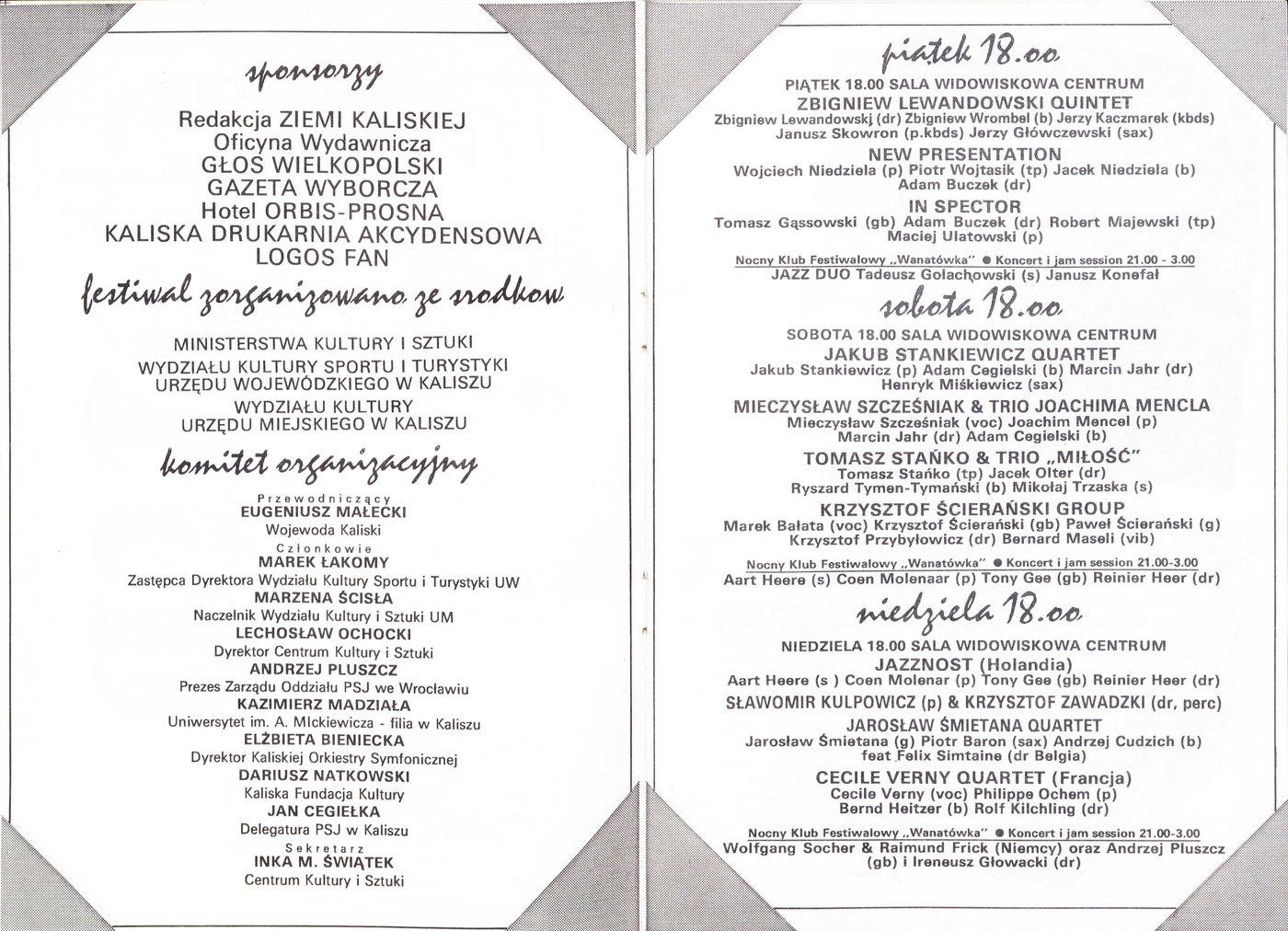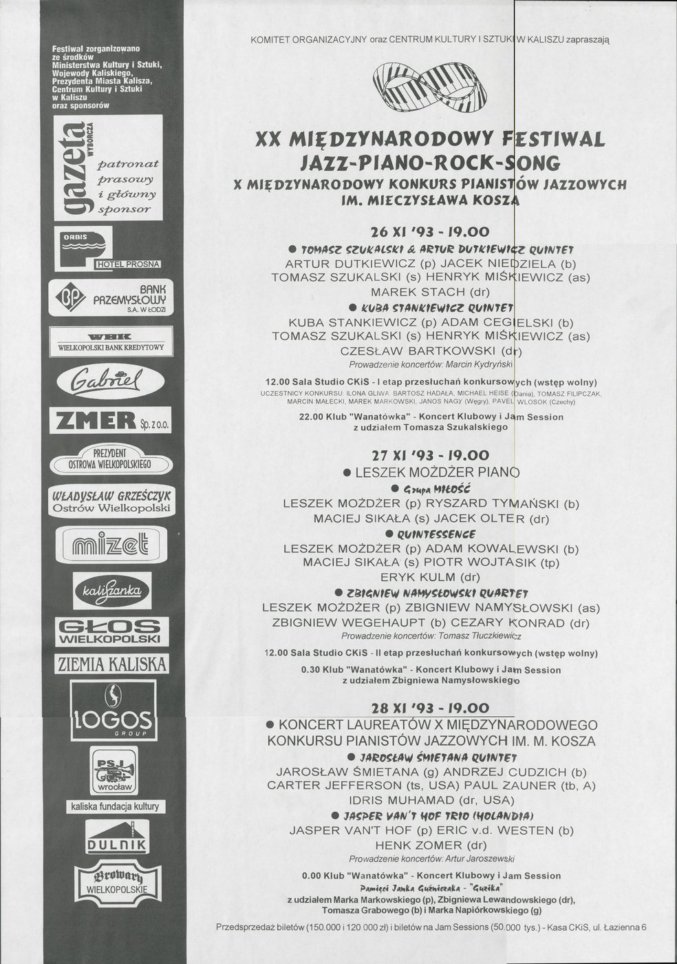 Program XX Festiwalu Jazz-Piano-Rock-Song w Kaliszu w 1993 r.