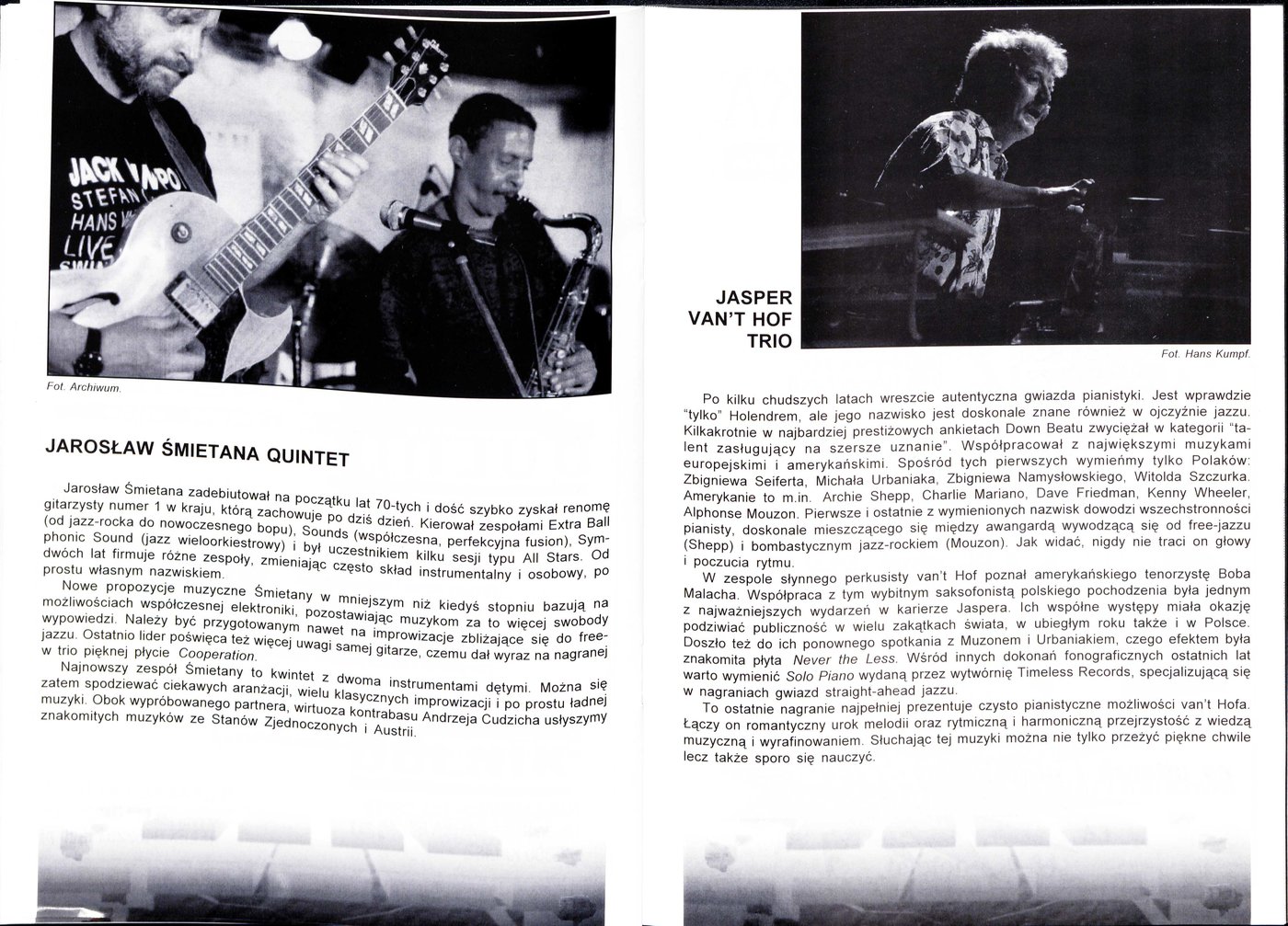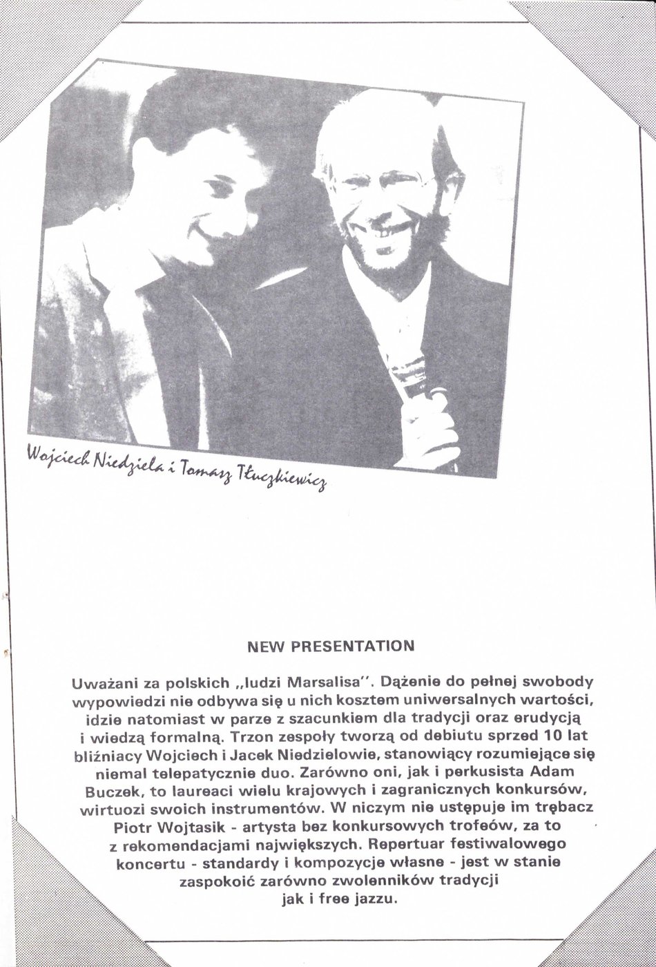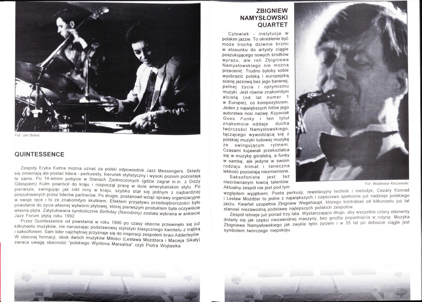 Program telewizyjny zrealizowany w trakcie prób do XXII Międzynarodowego Festiwalu Jazzowego w Kaliszu w 1995 r.