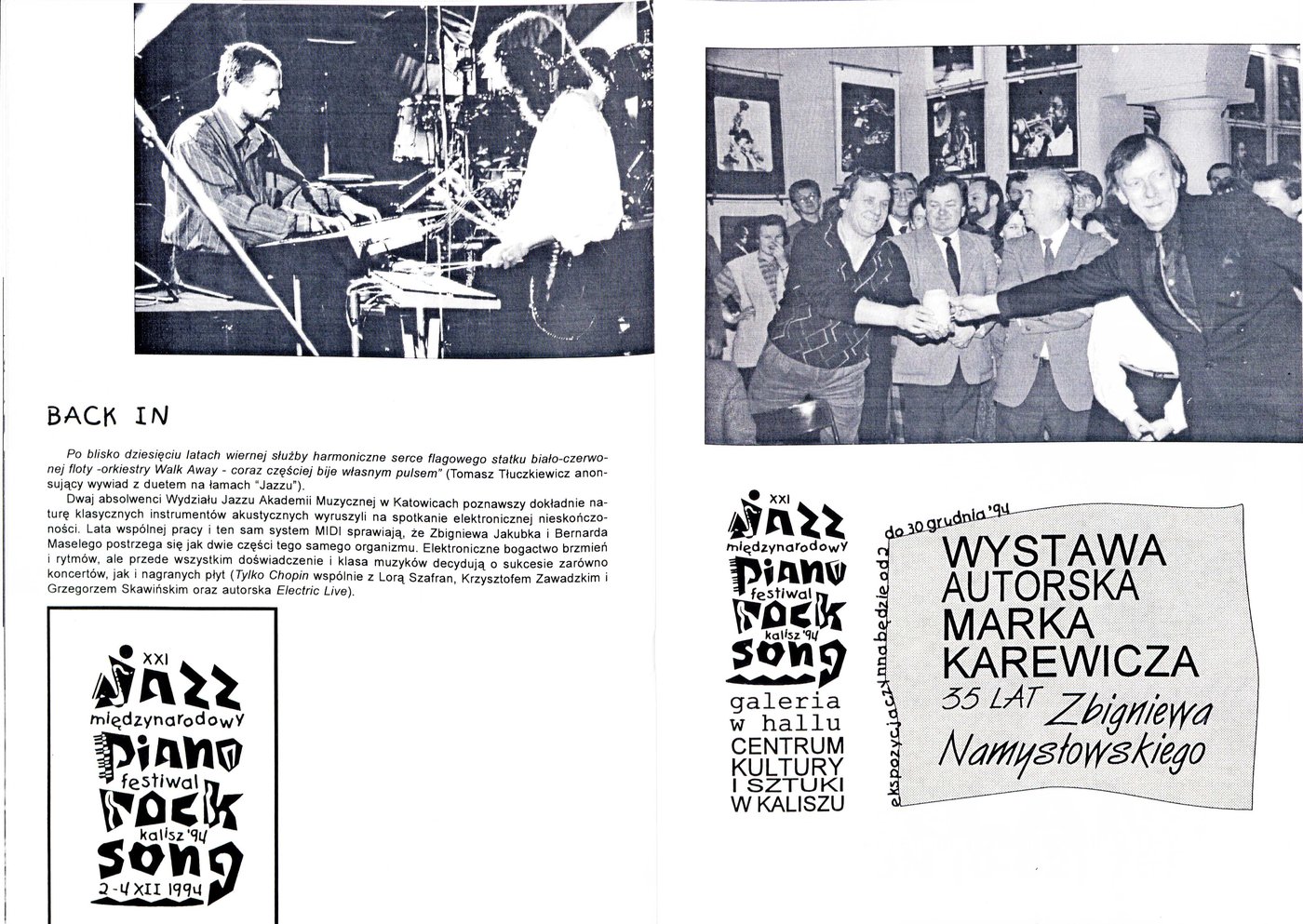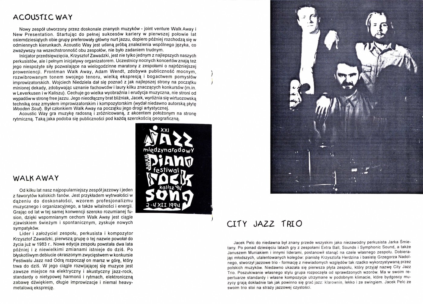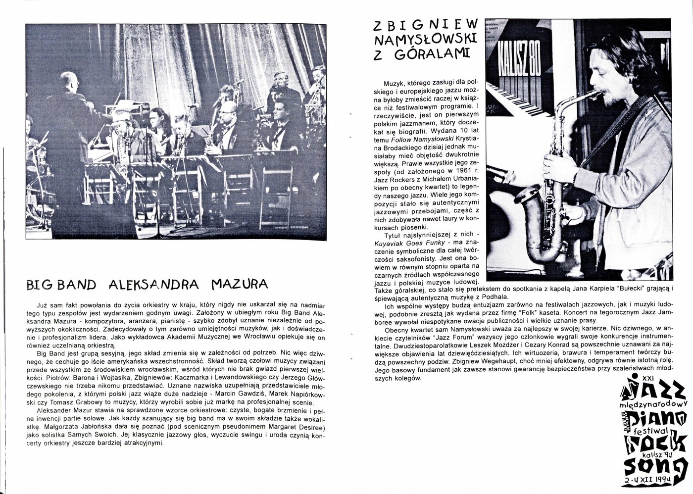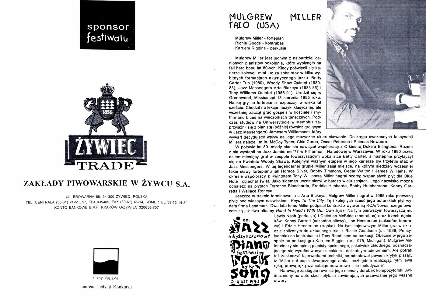Broszura promująca XXI Międzynarodowy Festiwal Jazz-Piano-Rock-Song w Kaliszu w 1994 r.