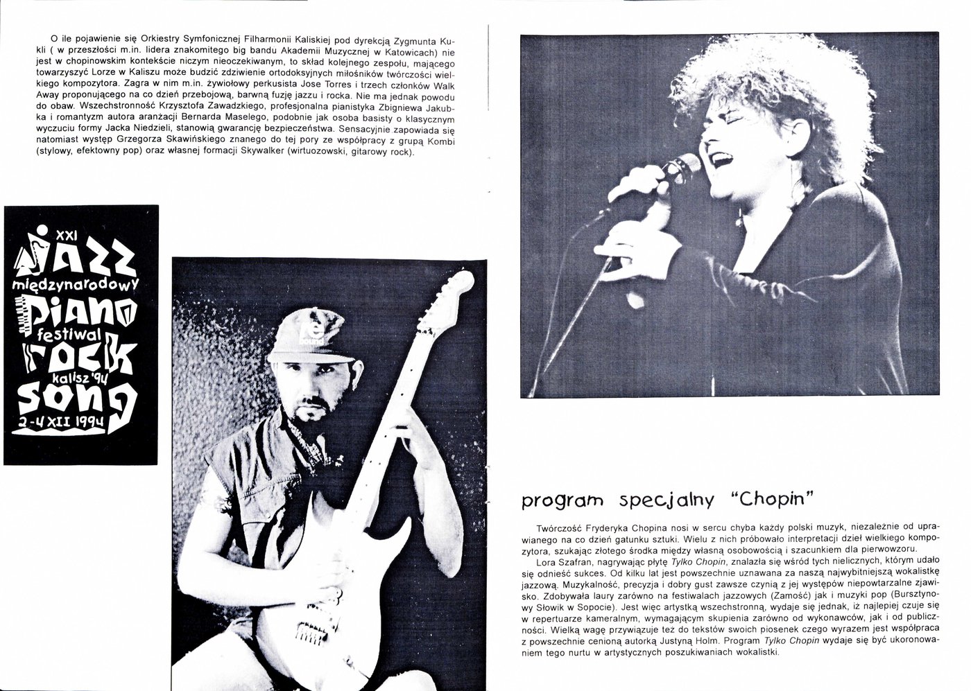 Program telewizyjny relacjonujący przebieg XXI Festiwalu Jazz-Piano-Rock-Song w Kaliszu w 1994 r. Przeprowadzono wywiady z występującymi m. in. z Lorą Szafran, Zbigniewem Namysłowskim.