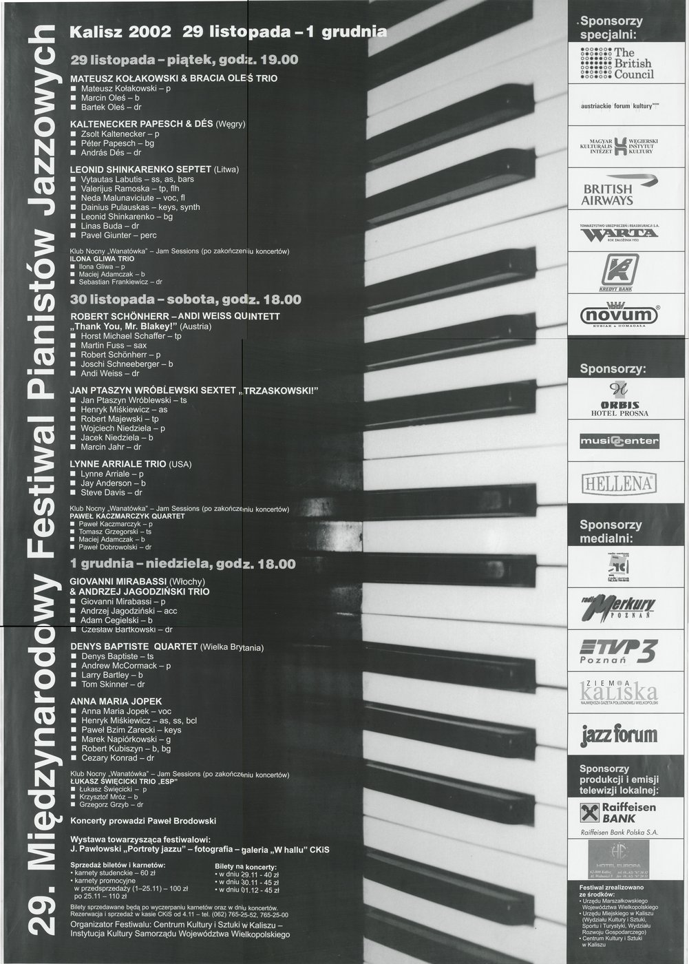 Plakat promujący XXIX Międzynarodowy Festiwal Pianistów Jazzowych w Kaliszu w 2002 r.