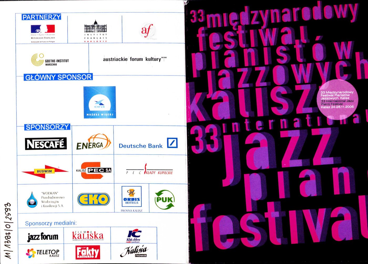 Zaproszenie na 125III Międzynarodowy Festiwal Pianistów Jazzowych w Kaliszu w 2006 r.