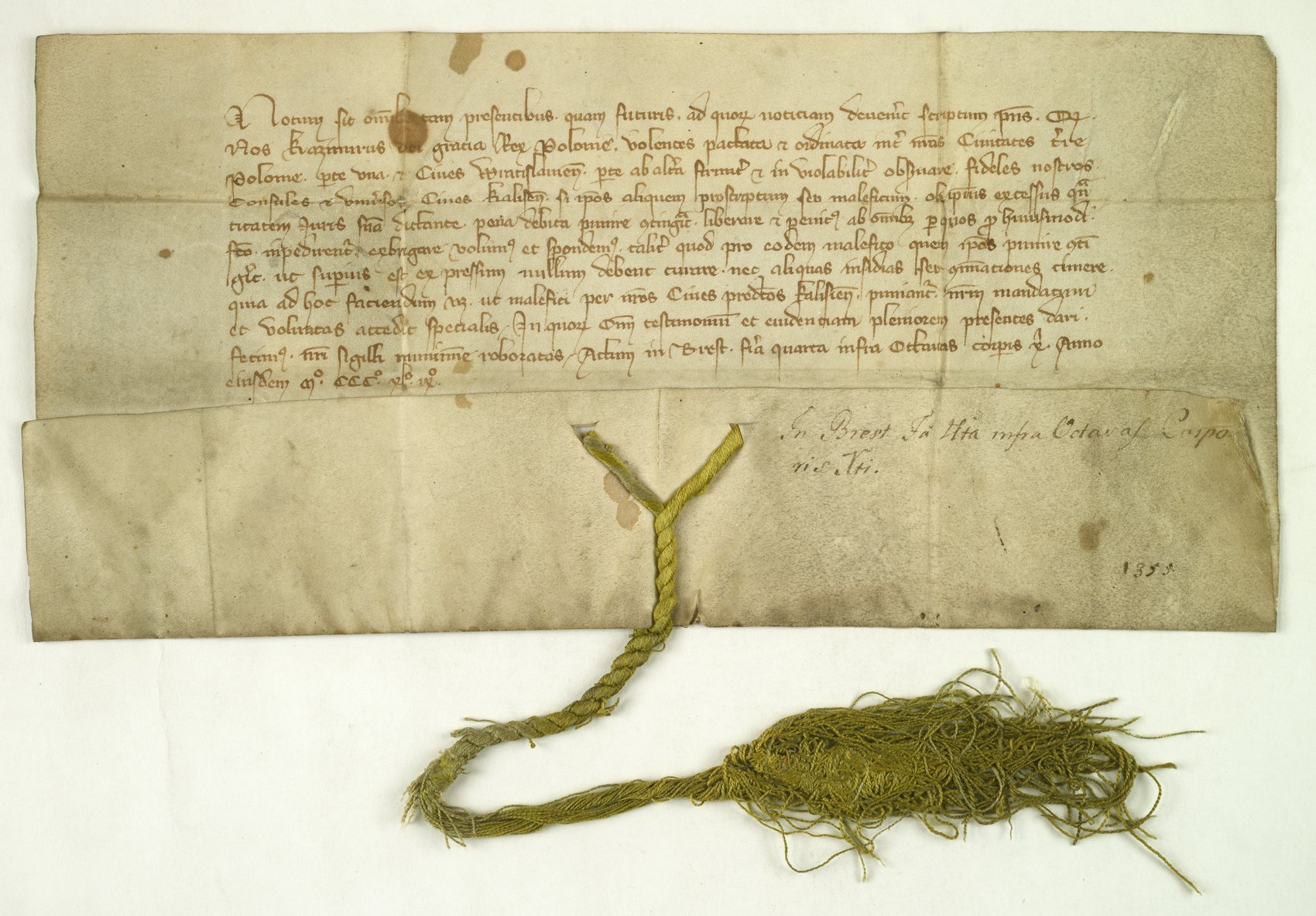 Dokument wydany przez króla Kazimierza Wielkiego w Brześciu w 1349 r., zezwalający mieszczanom kaliskim na karanie złoczyńców.