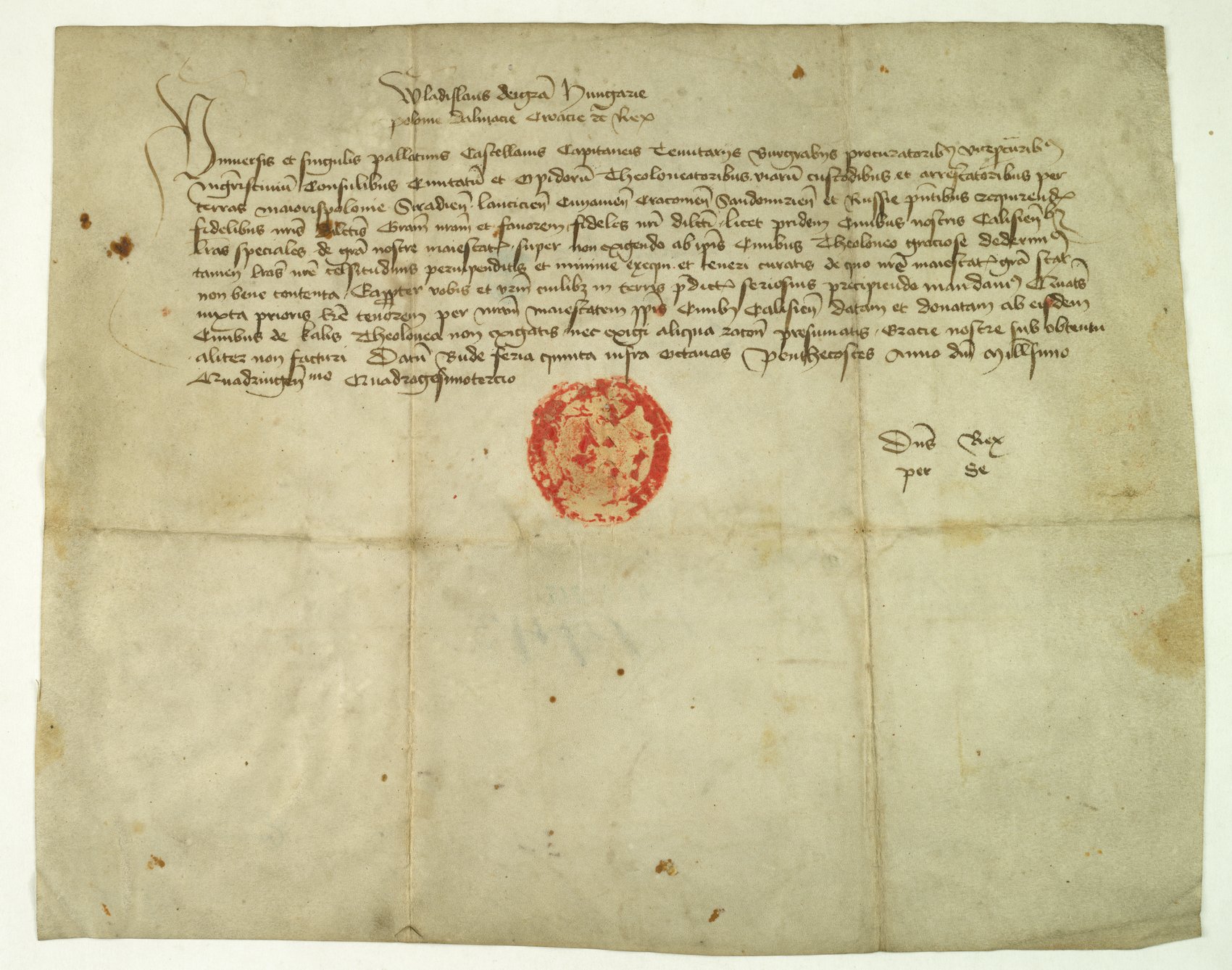 Nakaz króla Władysława Warneńczyka wydany w Budzie w 1444 r., by urzędnicy nie pobierali ceł od mieszczan kaliskich.