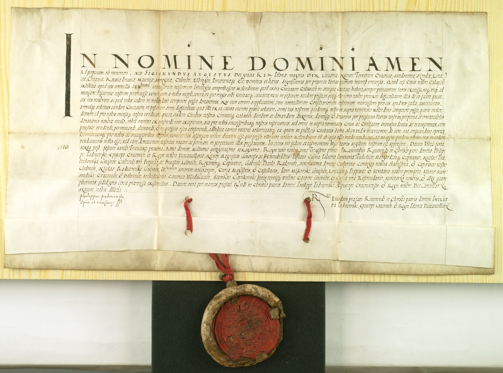 Zrzeczenie się przez króla Zygmunta Augusta w 1560 r. wszelkich swoich ewentualnych praw do młyna miejskiego w Kaliszu.
