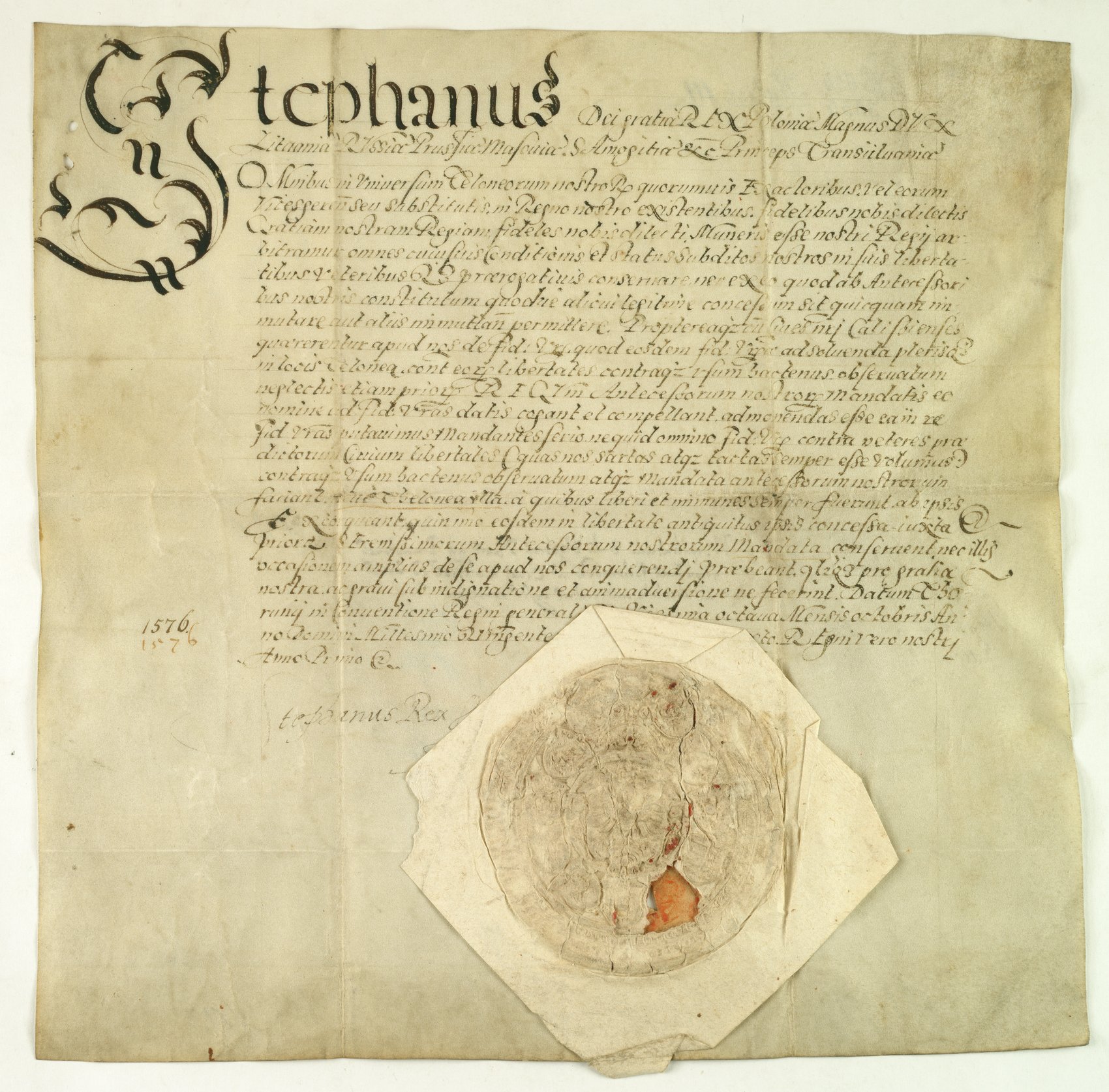 Uniwersał Stefana Batorego z 1576 r. skierowany do poborców celnych, by honorowali wolności celne mieszczan kaliskich.