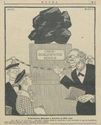 Obrazek, który ukazał się w czasopiśmie "Mucha" w 1922 r. prezentujący bryłę polskiego węgla w niemieckim muzeum jako ostatni element, który pozostał po całym obszarze Górnego Śląska.