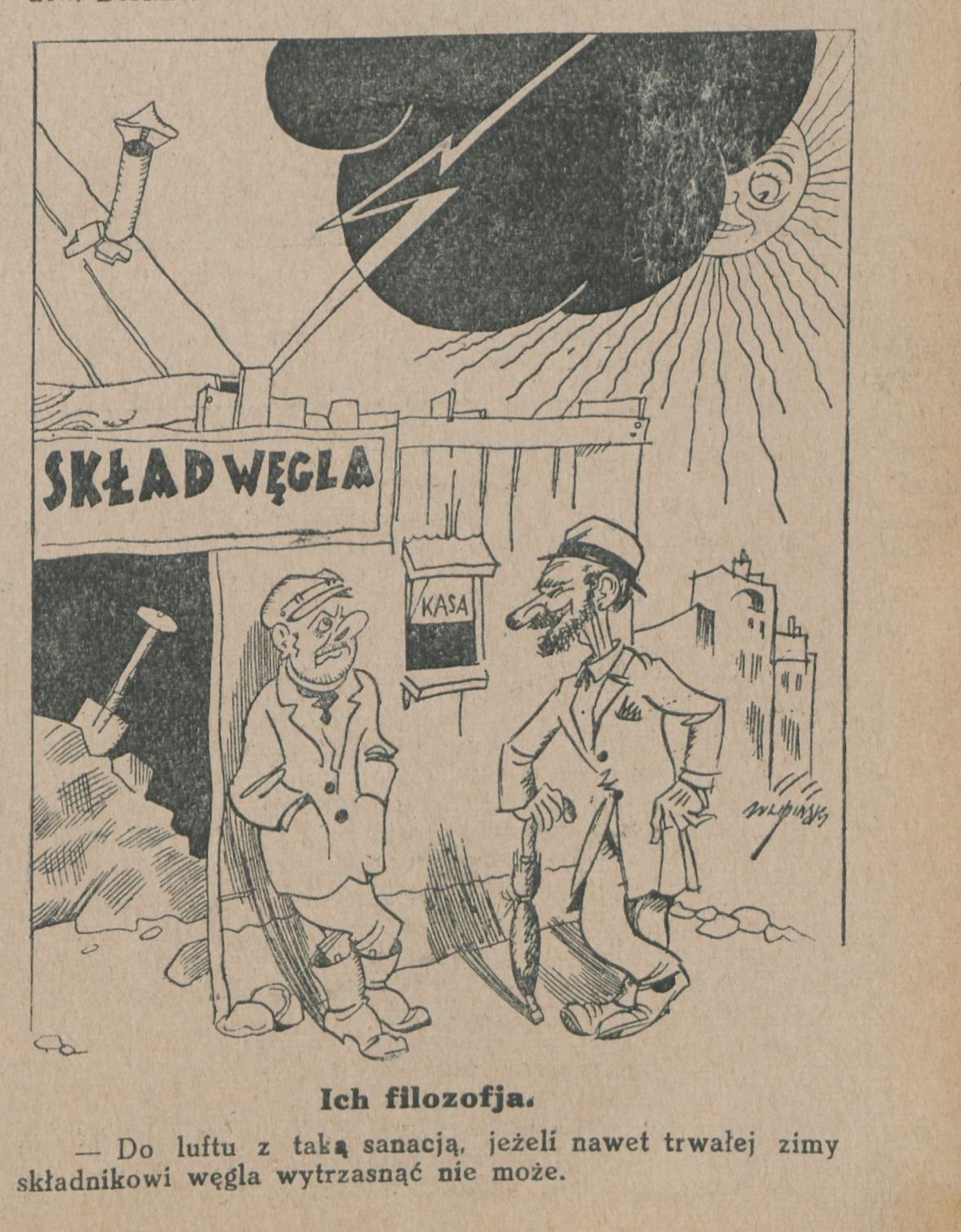 Ironiczny obrazek, który ukazał się w czasopiśmie "Mucha" w 1926 r.