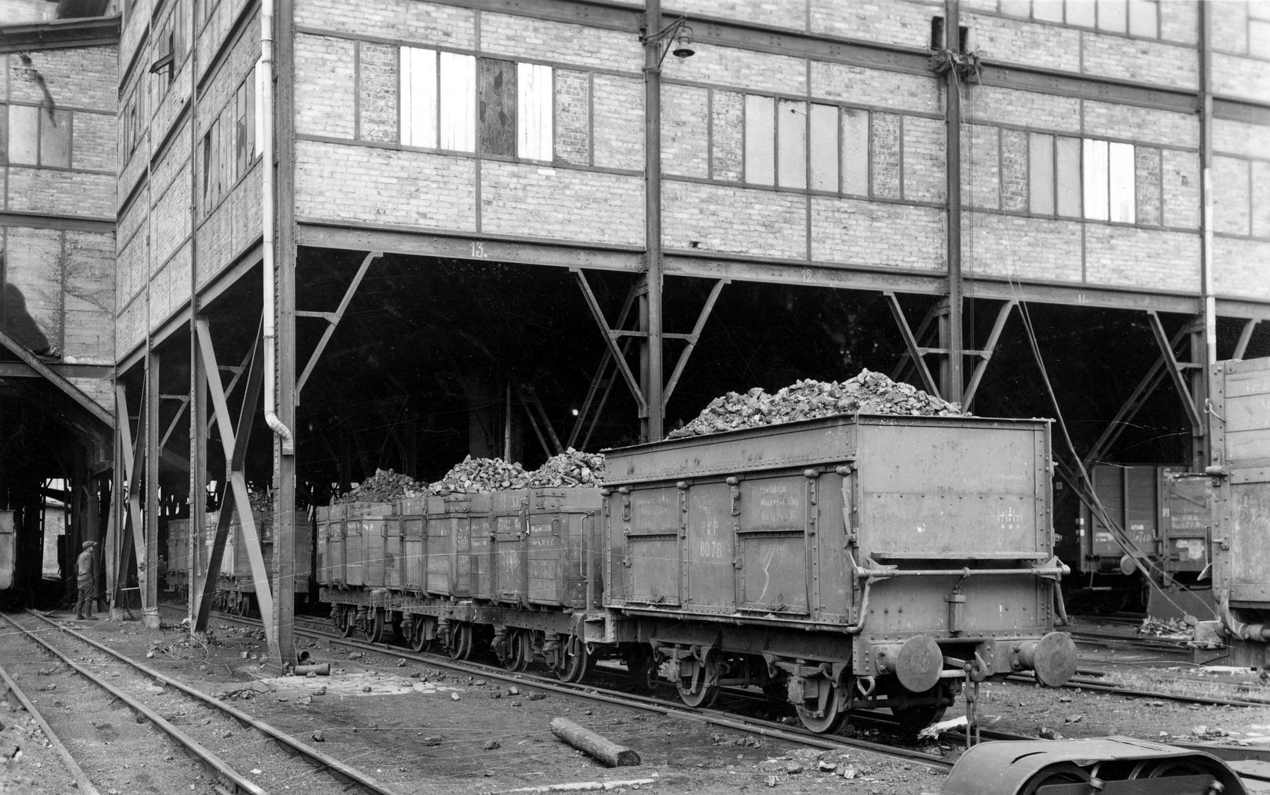 Fotografie z lat 1936-1939 prezentujące wagony z węglem w Kopalni Węgla Kamiennego "Michał" w Michałkowicach.