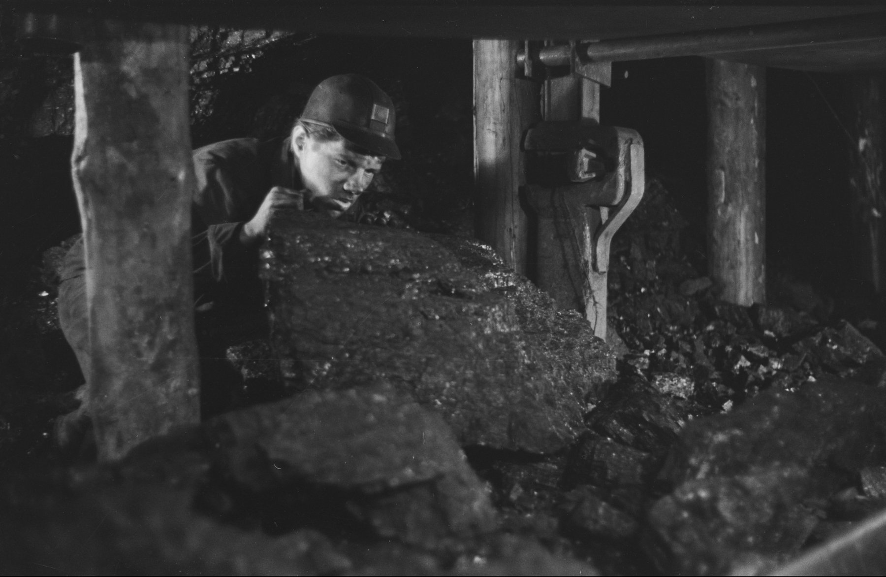 Fotografie z 1950 r. prezentujące wydobycie węgla z Kopalni Węgla Kamiennego "Siemianowice" w Siemianowicach Śląskich.