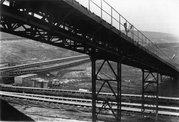 Fotografia z 1973 r. prezentująca taśmociągi węgla brunatnego.