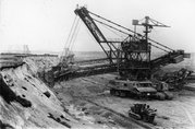 Fotografia z 1973 r. prezentująca koparkę czerpakową węgla brunatnego.